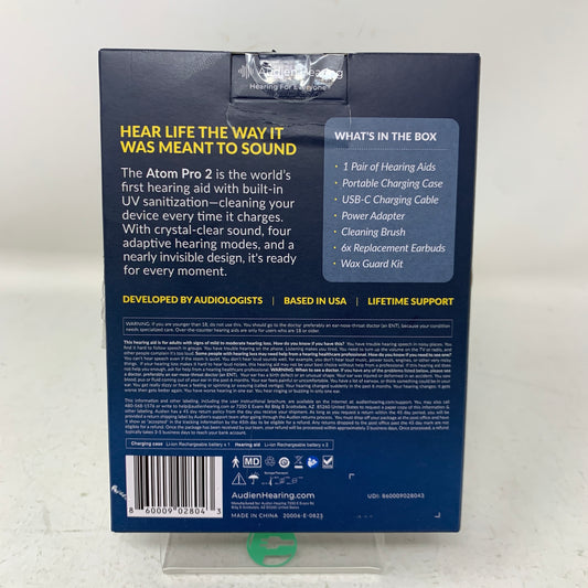 New Audien Atom Pro 2 Wireless Rechargeable Hearing Aids