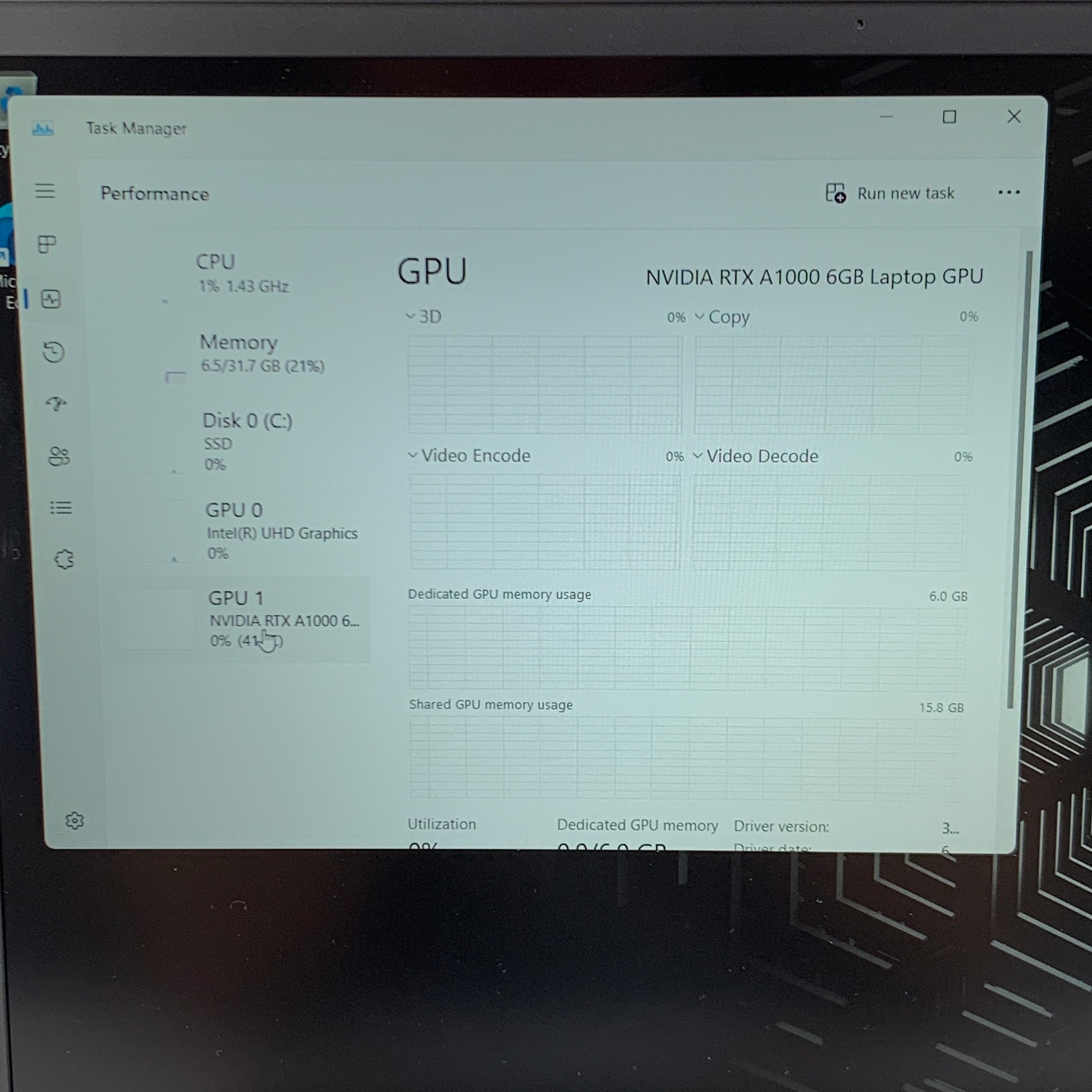 | GPU/Graphics Card | RTX A1000