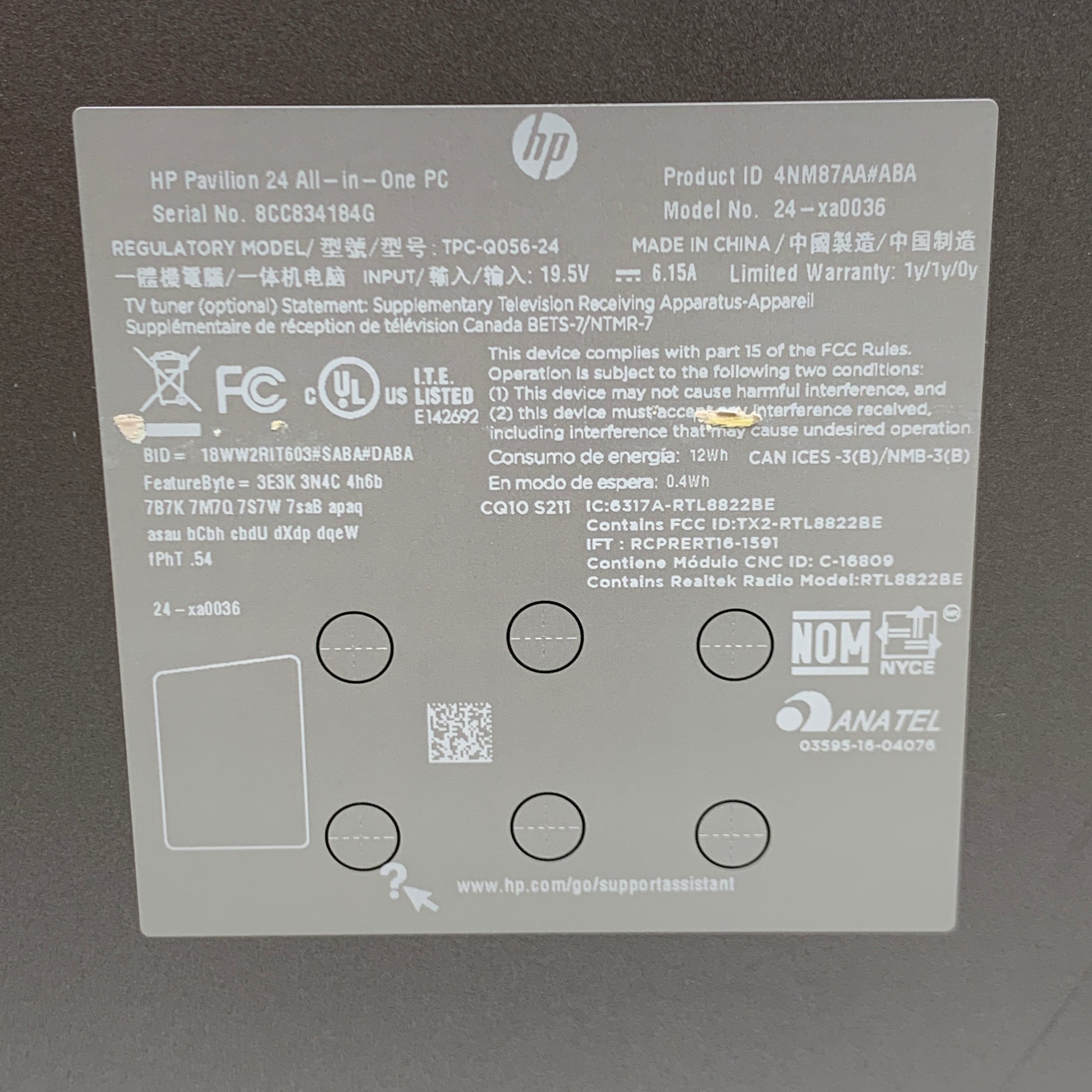 HP Pavilion 23.8" i5-8400T 1.70GHz 8GB RAM 1TB HDD