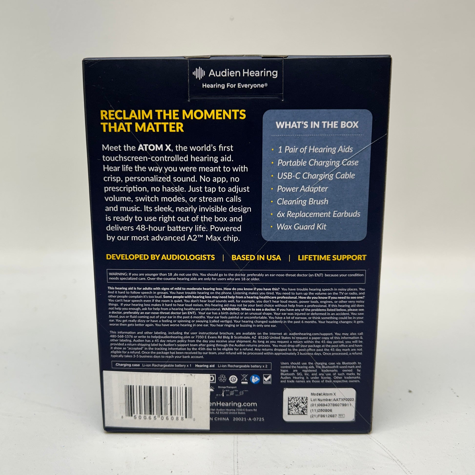 New Audien Hearing Atom X OTC Hearing Aids Touchscreen Case Bluetooth