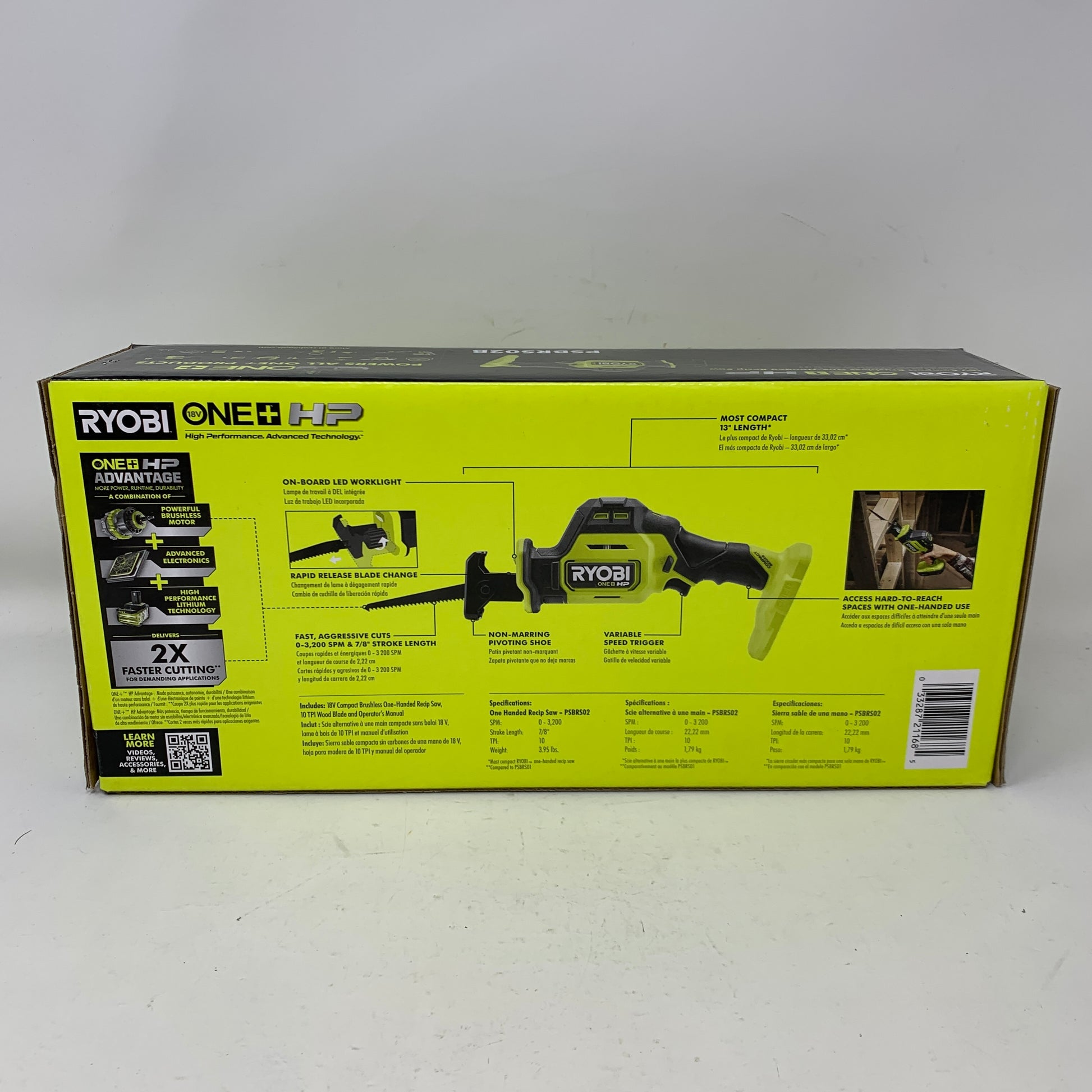 New Ryobi 18V ONE+ HP Brushless Compact One-Handed Reciprocating Saw PSBRS02B