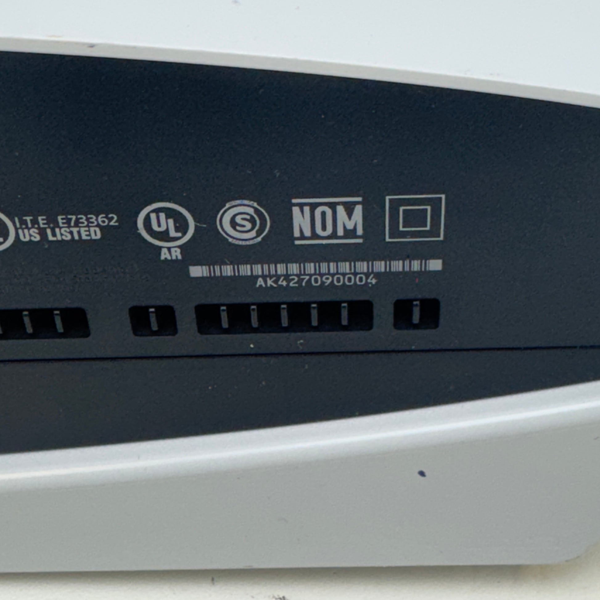 This console is in fair cosmetic condition, exhibiting noticeable scuffs, scratches, stains, and signs of heavy wear. Both the top and bottom of the unit show moderate to significant marks and wear from use. Please refer to the close-up photos provided for a detailed view of the item's current state.